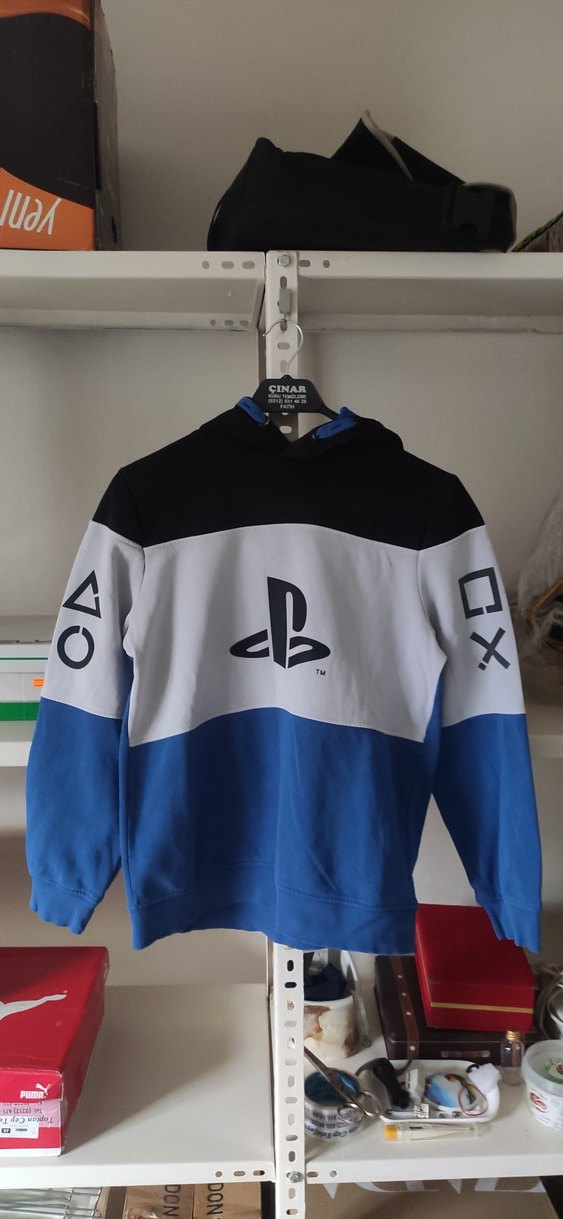 Uzun kollu, bisiklet yaka ve bol kesim erkek sweatshirtü. Yumuşak ve sıcak kumaştan, düğmeli detaylı, baskılı sokak stili tasarım, mavi tonlarda. 158,164 ölçülerinde 12,14 yaş arası için