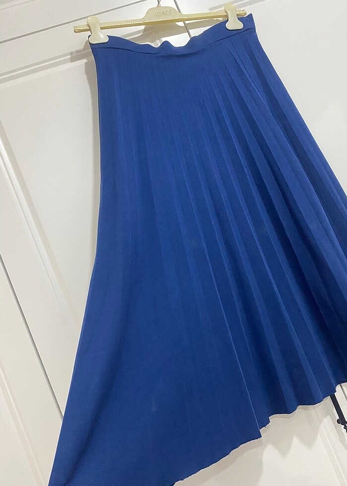 Lacivert pliseli etek iyi durumda bilekte duruyor çok güzel kombinlenir