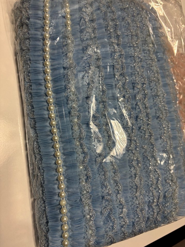 Pliseli incili şerit. Ölçüleri üzerinde yazmaktadır. Paket fiyatıdır