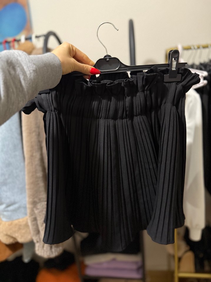 Pliseli Mini Siyah Hamile Eteği