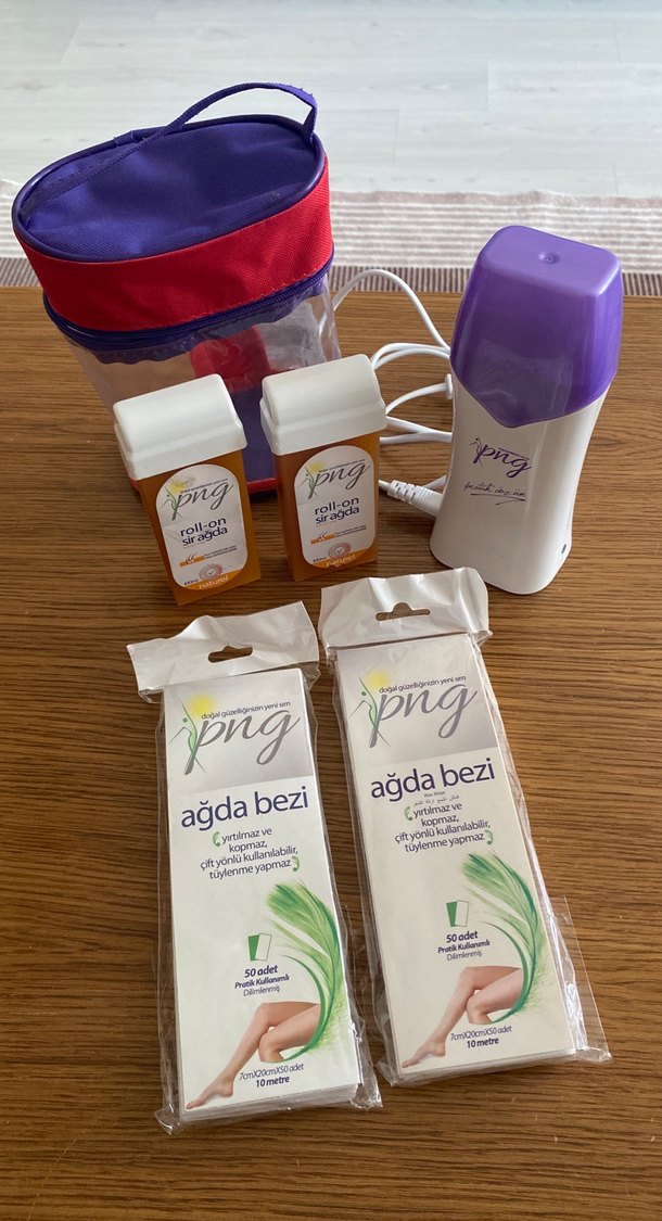 Png ağda setinde iki roll-on ağda, iki paket ağda bezi, ısıtıcı ve taşıma çantası bulunur. Tüy alma için uygundur. ️