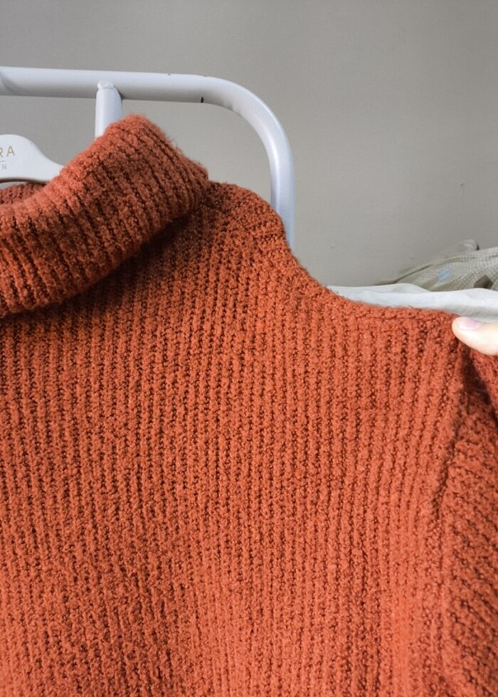 Yünlü/polyester yumuşacık kazak. Birkaç defa kurutmaya attım ve biraz genişledi oversize gibi oldu