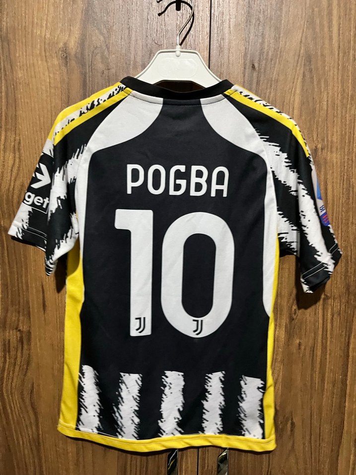 Düğmeli, sentetik kumaştan yapılmış, kısa kollu, bisiklet yaka, Pogba 10 numara baskılı, koyu sarı ve siyah renklerde erkek spor forması. ⚽