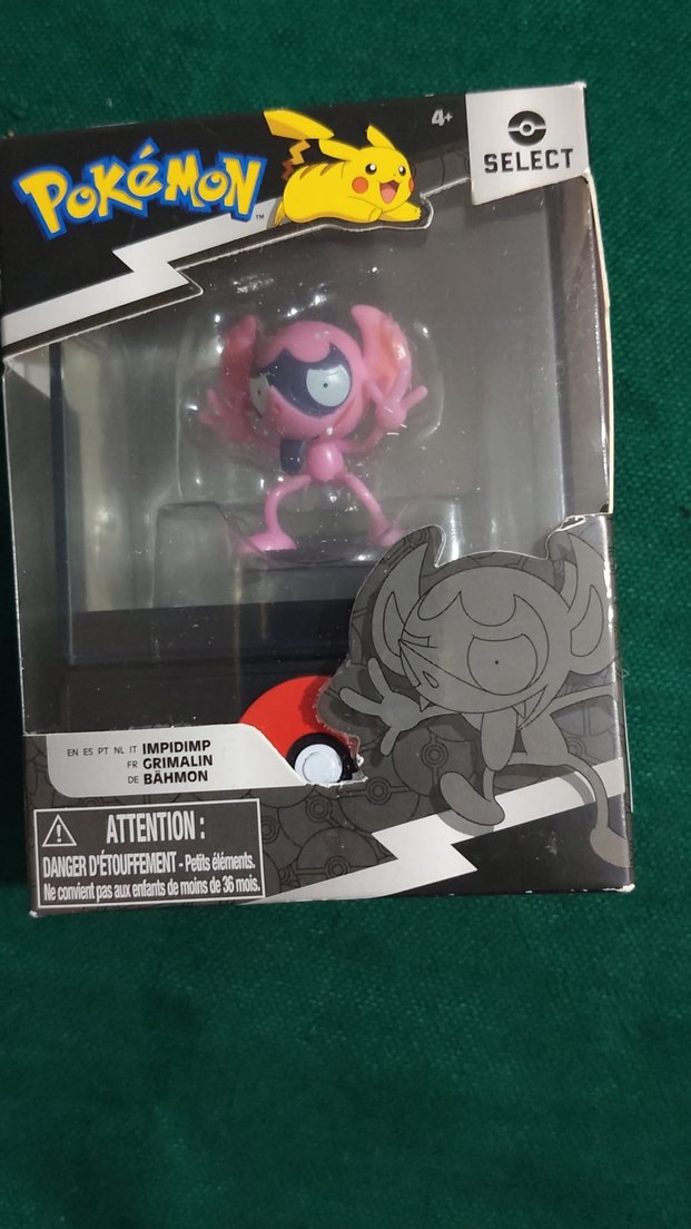 Koyu pembe renkli Pokémon Impidimp aksiyon figürü, orijinal kutusunda ve SELECT etiketiyle. Karakter detayları özenle işlenmiş.