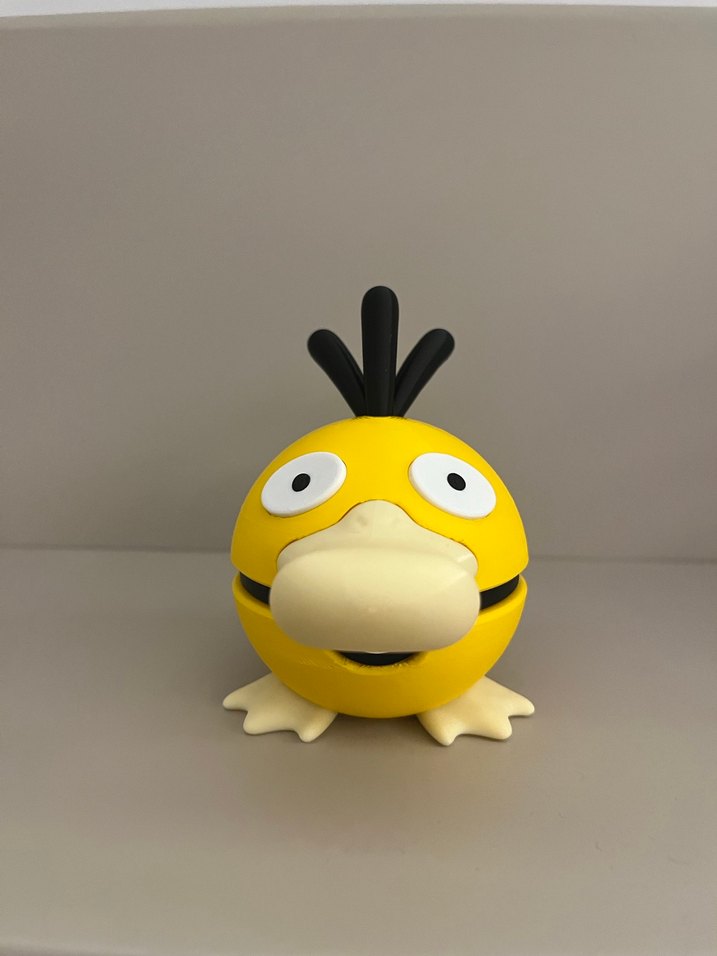 Tamamı renkli baskı üründür farklı modeller için sorabilirsiniz. Sarı renkli, dikkat çekici gözleri ve gagası olan renkli Psyduck figürü.