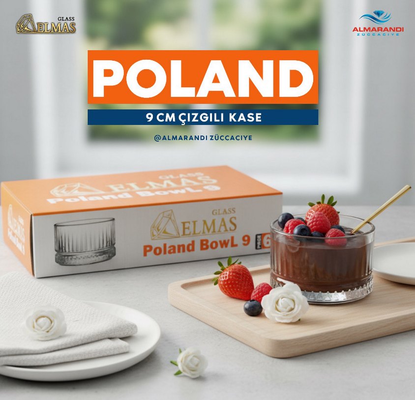 Poland'dan 9 cm çapında çizgili cam kase seti. Tatlı ve atıştırmalık servisi için uygundur, Elmas Glass tarafından paketlenmiştir.