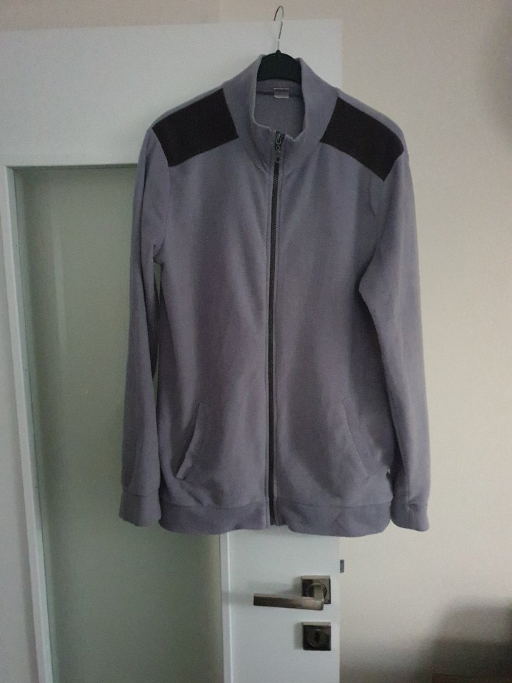 birkac kez giyildi deforme yoktur. Yüksek yakalı ve fermuarlı, polar kumaştan yapılmış gri tonlarında, siyah omuz detaylı, uzun kollu