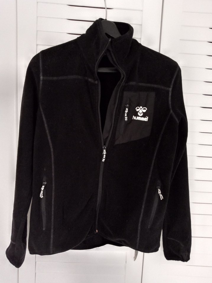 Siyah, fermuarlı cepleri ve yakası bulunan, uzun kollu, vücuda oturan kadın polar M beden