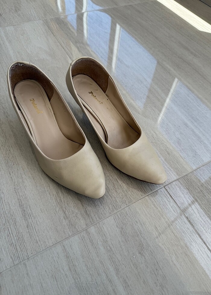 Polaris alçak topuk krem rengi ayakkabı