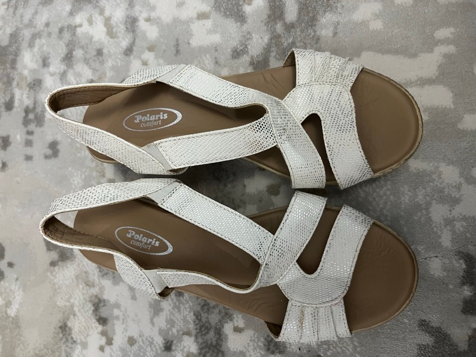 Polaris Beyaz Yılan Desenli Dolgu Topuklu Sandalet