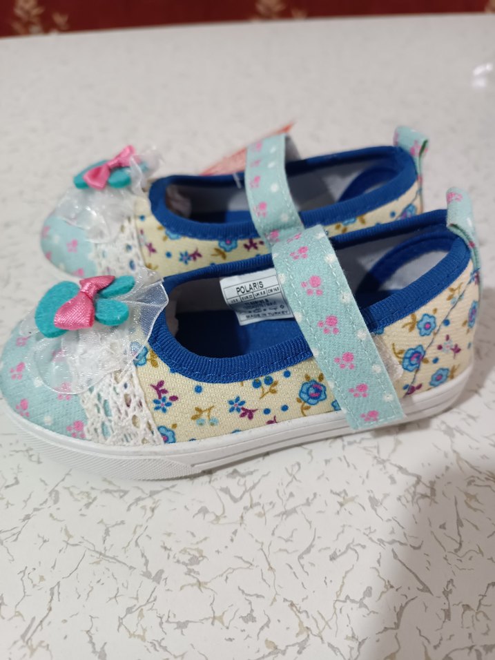 Çiçek desenli ve dantel detaylı kız çocuk spor ayakkabısı, mavi şerit ve bağcıklı tasarıma sahiptir. Kauçuk tabanlı, günlük sokak stiline uygun.