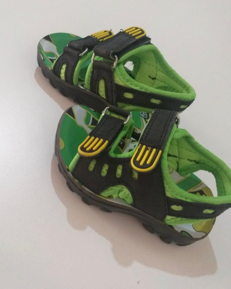 Yeşil renkli, kauçuk tabanlı ve kemerli erkek çocuk terliği, trend sokak stili için uygundur.