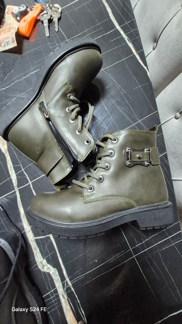 blok topuk ve tokalı detaylara sahiptir. Kamuflaj desenli, yan fermuarlı, rock punk ve sokak stilini yansıtır. 37 ile daha uyumludur