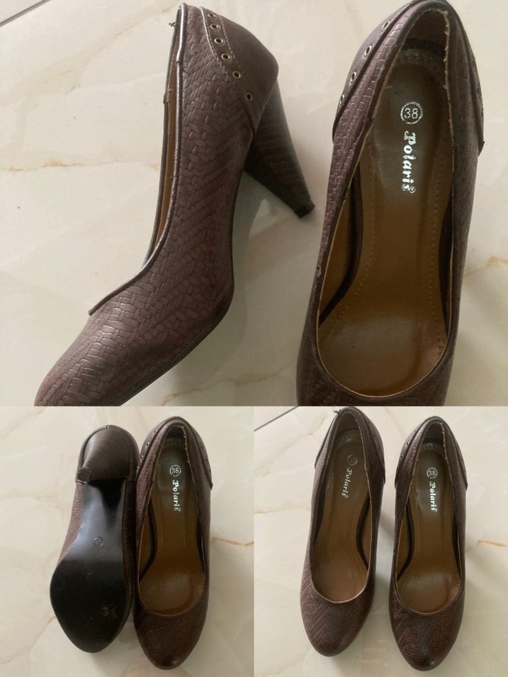 Polaris Kahverengi Yılan Derisi Desenli Topuklu