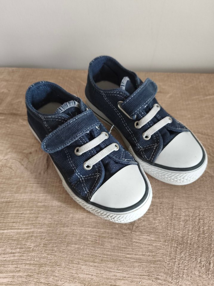 Mavi kot kumaştan, gri detaylı, bağcıklı ve cırt cırtlı kız çocuk sneakers.