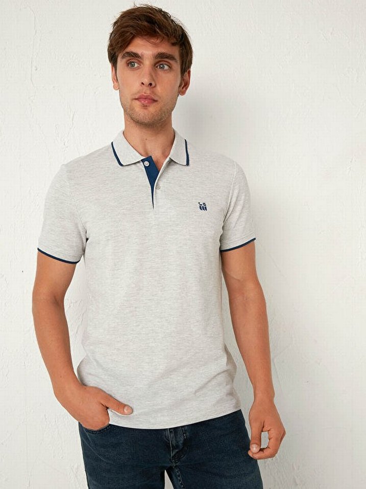 Lc Waikiki marka, Small beden, gri renk erkek polo yaka tişört. İki kol arası: 45cm, omuzdan itibaren boyu: 69cm ölçülerindedir.