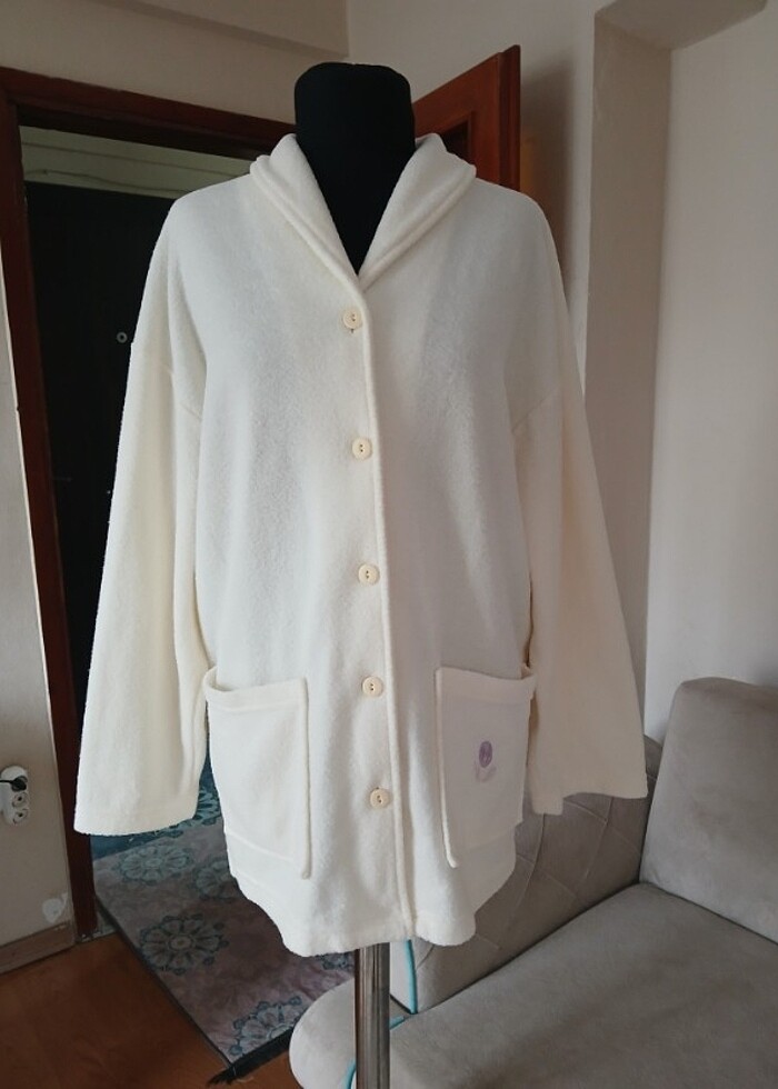 Yumuşacık polar dokusu ve kırık beyaz rengiyle sıcacık, zarif bir parça! Tam beyaz değildir, kırık beyaz tonundadır. İç etiketinde S beden yazmaktadır. Önden düğmeli model Polar kumaş – yumuşak, sıcak tutar. ✨ Kaliteli duruşu ve sade şıklığıyla her mevsim kombinlenebilir. Günlük ve rahat kombinlerde ideal Beden ölçüsü iki kol arası göğüs 60 cm uzunluk 74 cm kol genişliği omuzdan 54 cm koldan genişlik 45 cm kol uzunluğu 51 cm................(5)