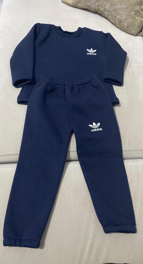 Adidas erkek çocuk lacivert eşofman takımı, bol kesim ve bisiklet yaka sweatshirt ile uyumlu alt pantolondan oluşur. Yumuşak ve sıcak kumaştan, sade ve rahat bir günlük stil sunar.
