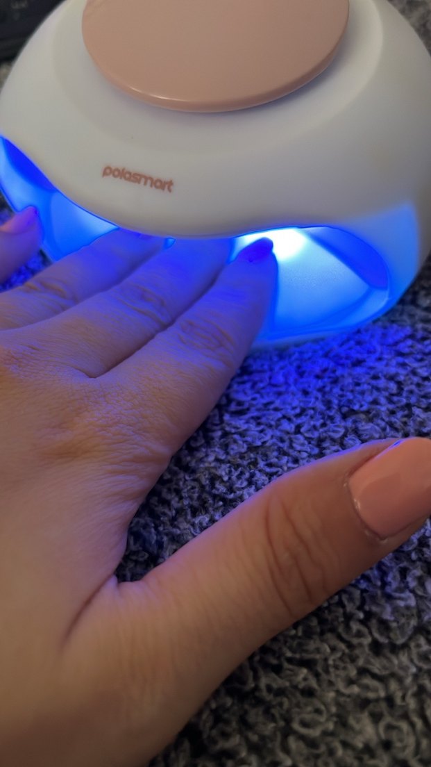 Polasmort markasına ait açık mavi tırnak kurutucu, UV lamba altında kurutuluyor. Yeni alındı kullanılmadı. UV uyumlu oje kullanmanız gerek.