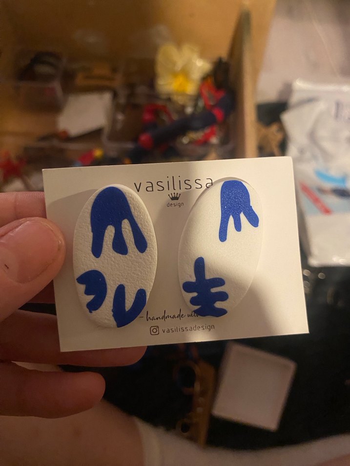 Polimer kil küpe. Sevdiğim bir tasarımcıdan satın almıştım. Hiç kullanmadım. O nedenle satıyorum. Ürünün hiçbir sorunu yok. Yeni sahibine şimdiden hayırlı olsun.