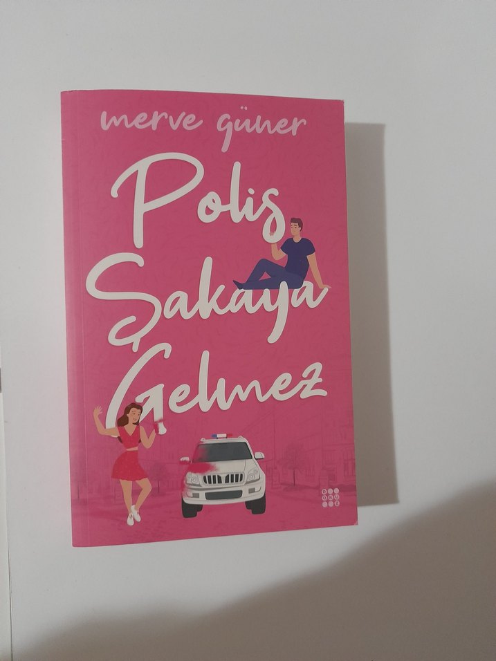 Merve Güner'in 'Polis Sakaya Gelmez' adlı romanı, pembe kapak ve eğlenceli çizimlerle dikkat çekiyor. Tek kitaptır