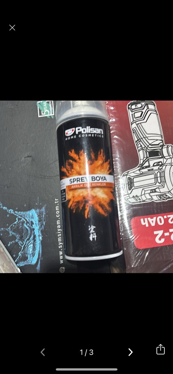 Polisan akrilik sprey boya, canlı koyu renkte, çeşitli yüzeyler için uygundur. Üzerinde 'SPREBOYA, COSMETI' yazısı bulunur. 12 tane mat beyaz 1 adet mar siyah 0 kutulu orjinal