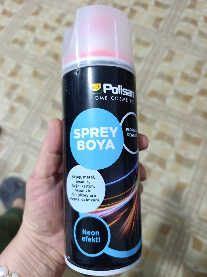 Ahşap, metal, seramik gibi yüzeylere uygulanabilen Polisan neon efektli pastel pembe sprey boya.