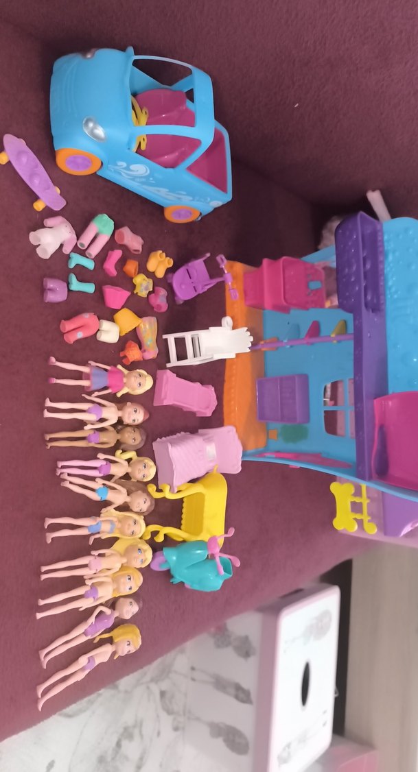 Orjinal 10 adet bebek 16 adet üst 7 adet fazladan araç bir adet araba ve polly Pocked evi defosuz harika ürünler kızım çok oynadı artık büyüdüğü için oynamıuor satıyorum