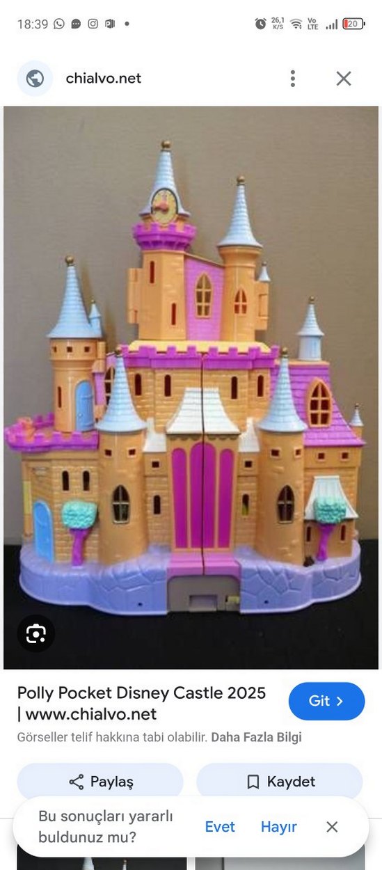 Polly Pocket Disney Şatosu, pastel pembe ve mor tonlarda, detaylı kuleler ve pencerelerle hayal gücünü destekler.