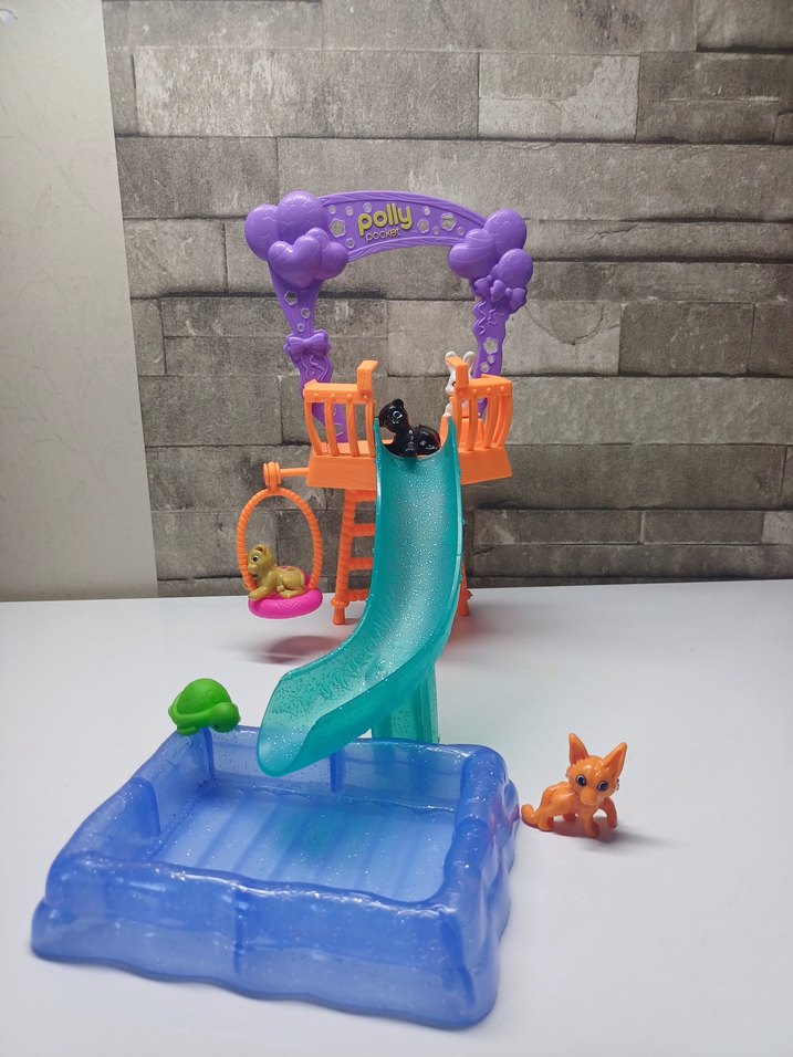 yeşil kaydırak, turuncu merdiven, küçük havuz ve hayvan figürleri içeren oyuncak oyun seti.ürün orijinaldir.herhangi bir deformasyon bulunmamaktadır. ihtiyaç fazlası olduğu için satıyorum 4 adet hayvan figürü ve bir polly pocket bebek içerir. hayvan figürleri ve polly pocket bebek fiyata dahildir. iyi günlerde kullanmanızı dilerim