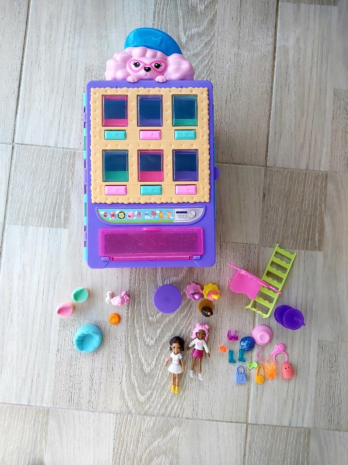 Pastel renklerde küçük bebek evi ve aksesuarlar içeren oyuncak seti. Birden fazla bölmesi ve çeşitli küçük figürleri bulunur. #pollypocket #modaevi