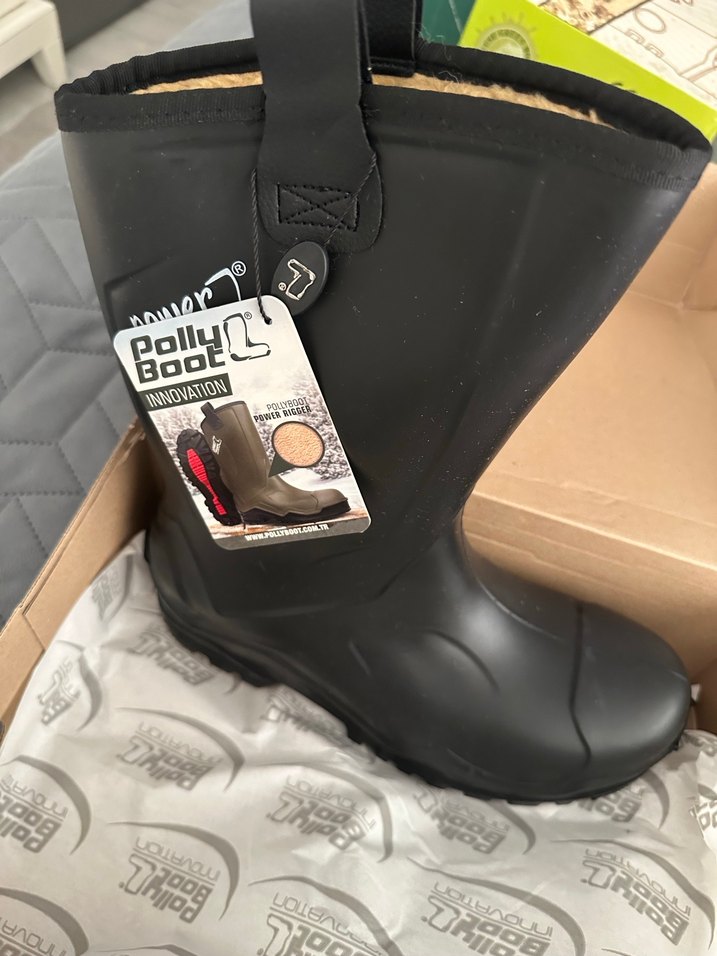 Siyah kauçuk erkek içi yünlü çizme , tokalı kayışlı sıfır etiketli dayanıklı 43 numara Polly Boot Power Riger çizme