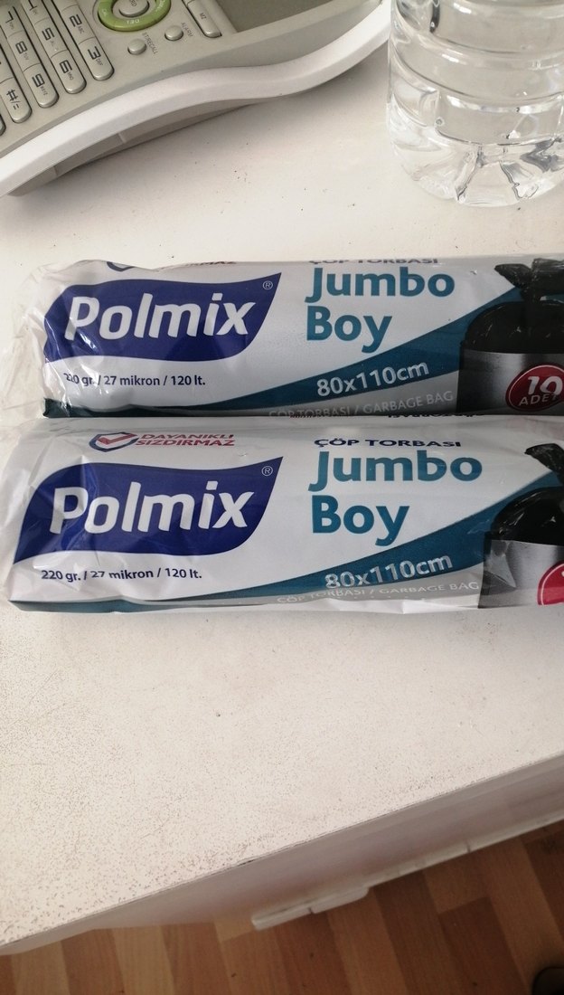Polmix Jumbo Boy çöp torbaları, 80x110 cm ölçülerinde ve 27 mikron kalınlığındadır. Her pakette 10 adet, 220 gram ağırlığında torba bulunur. ️