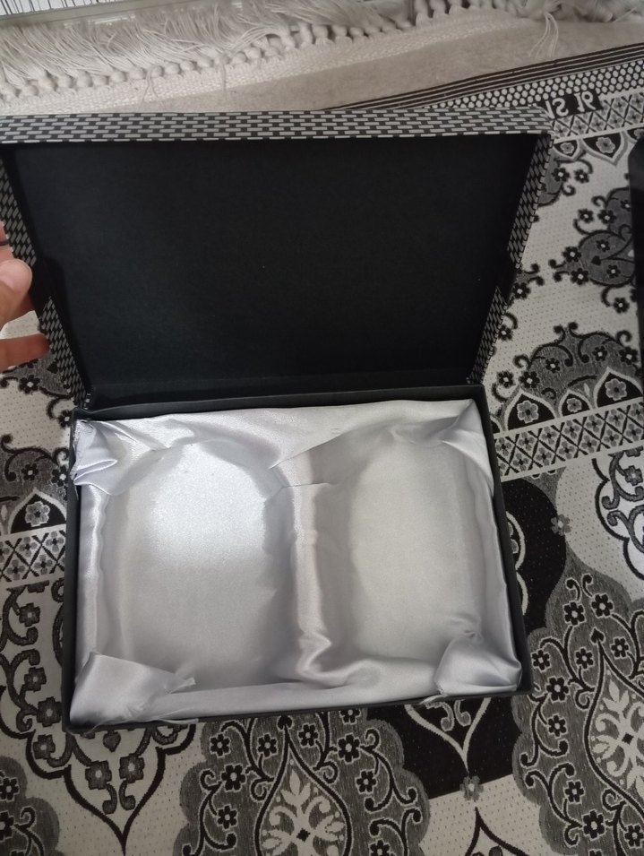 Desenli kutu içinde, içi gri saten dokulu,parfüm ve deodorant kutusu