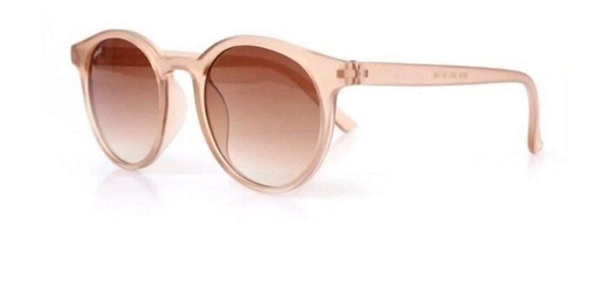 Bej şeffaf malzemeden yapılmış, minimalist ve çağdaş tasarıma sahip kadın güneş gözlüğü. Hafif ve sade bir görünüme sahiptir. Marka kutulu gönderim Uv400 korumalı