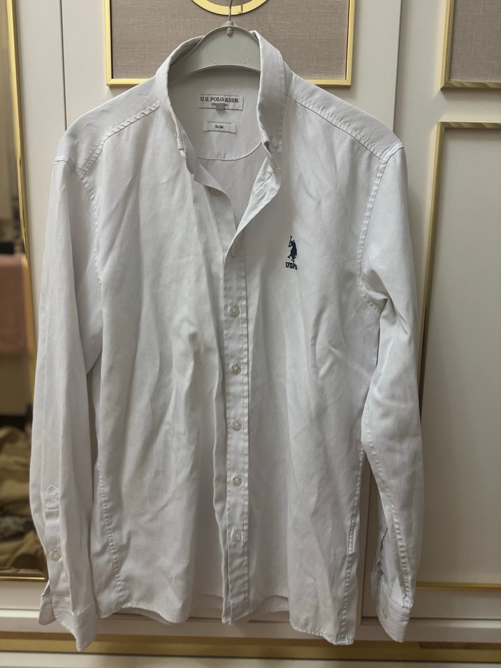 Polo Beyaz renkte, pamuk kumaştan yapılmış, düğmeli, uzun kollu ve yakalı erkek gömleği. Ofis ve günlük sokak stiline uygun, sade ve nakışlı tasarım.