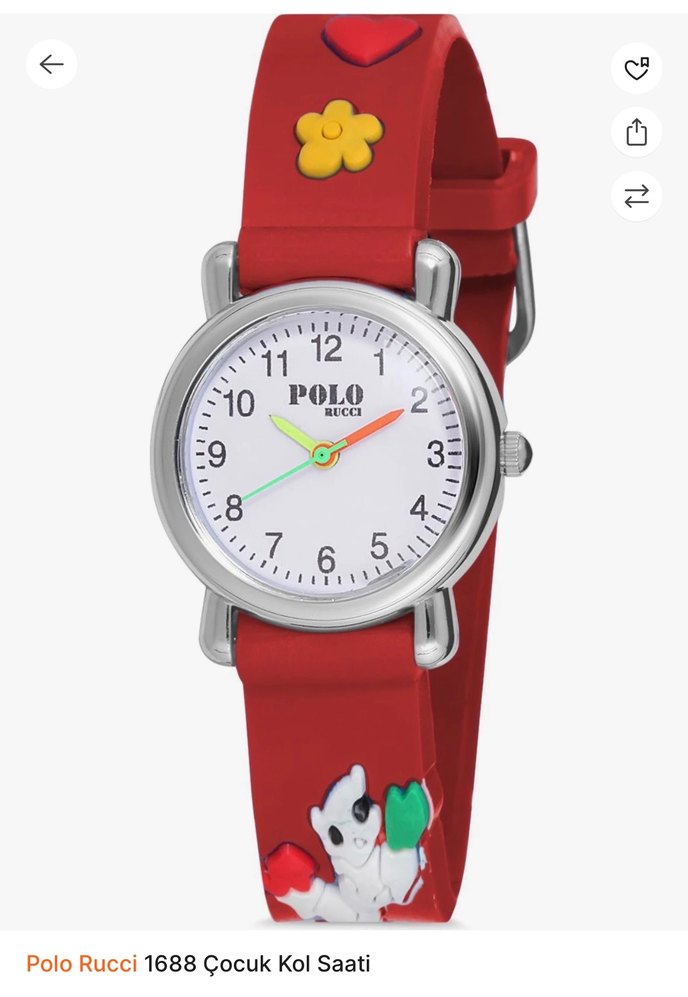 Marka : Polo Rucci; Cinsiyet : Çocuk; Kasa Çapı : 30; Kordon Tipi : Plastik; Kasa Tipi : Plastik; Cam Cinsi : Kristal; Makine Tipi : Pilli; Fonksiyon : Analog ;su geçirir. Ürününüzün 2 yıl boyunca sadece quartz makinesi güvence altındadır. Tüm ürünler paketli şekilde gönderilmektedir.y