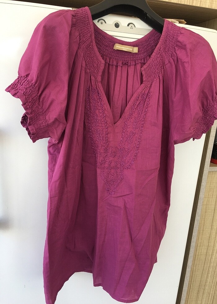 Tertemiz,incecik,yakası ve kolları lastikli,nakış detaylı bluz.iki kol arası:55cm boy:68cm
