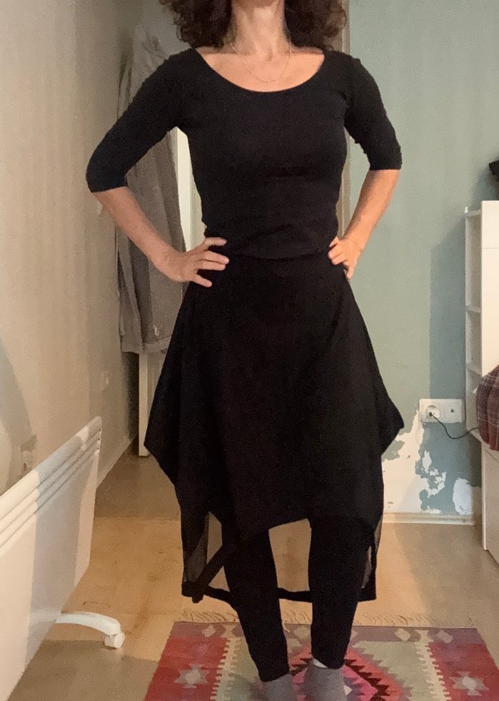 Tasarımı özel, arkasında tül olan modern şık etek.