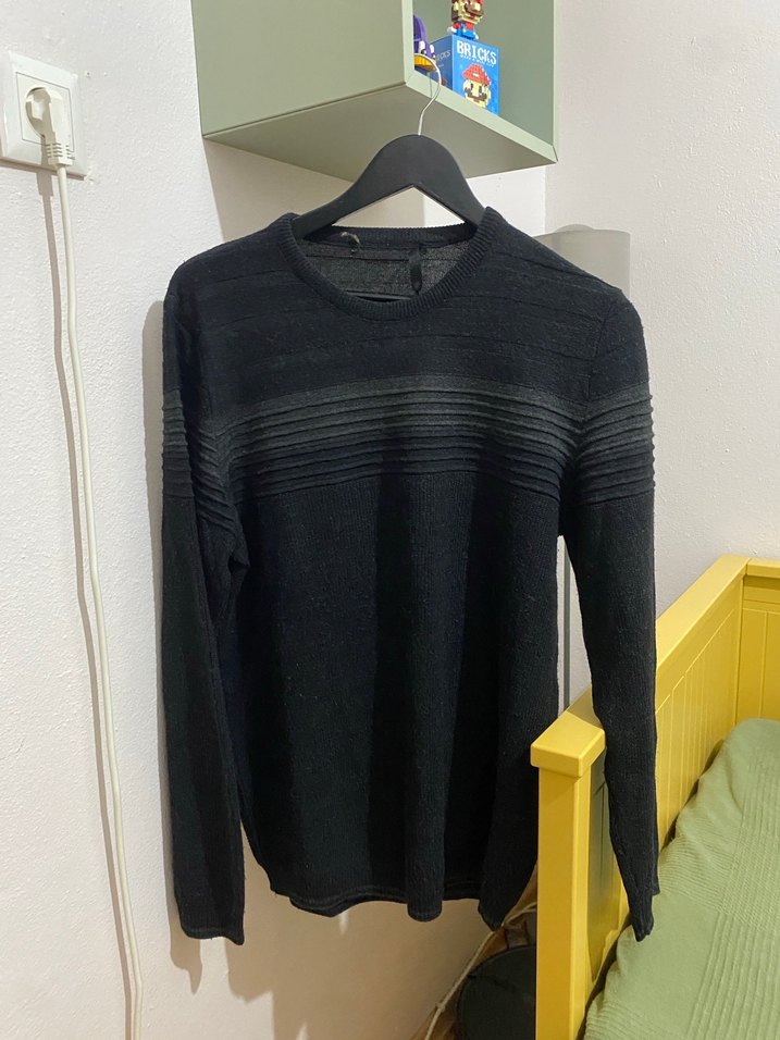 Siyah renkli, örgü dokulu triko kazak, bisiklet yaka ve uzun kolludur. Normal boy ve regular fit kalıptadır, minimalist tarzda günlük kullanıma uygundur.