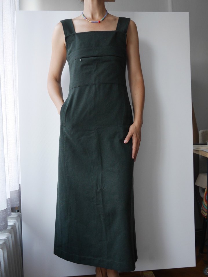 POLO GARAGE, Yeşil, Kolsuz kışlık yün kumaş uzun elbise