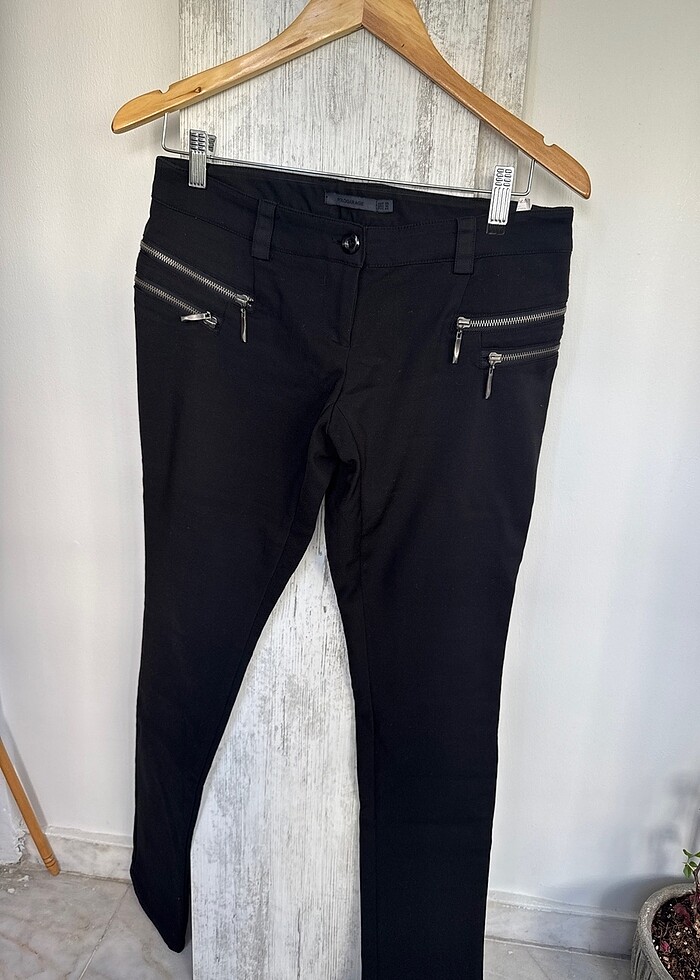 Üründe herhangibi bir kusur yoktur.siyah yandan iki fermuarlı detaylı dar paça pantolon.
