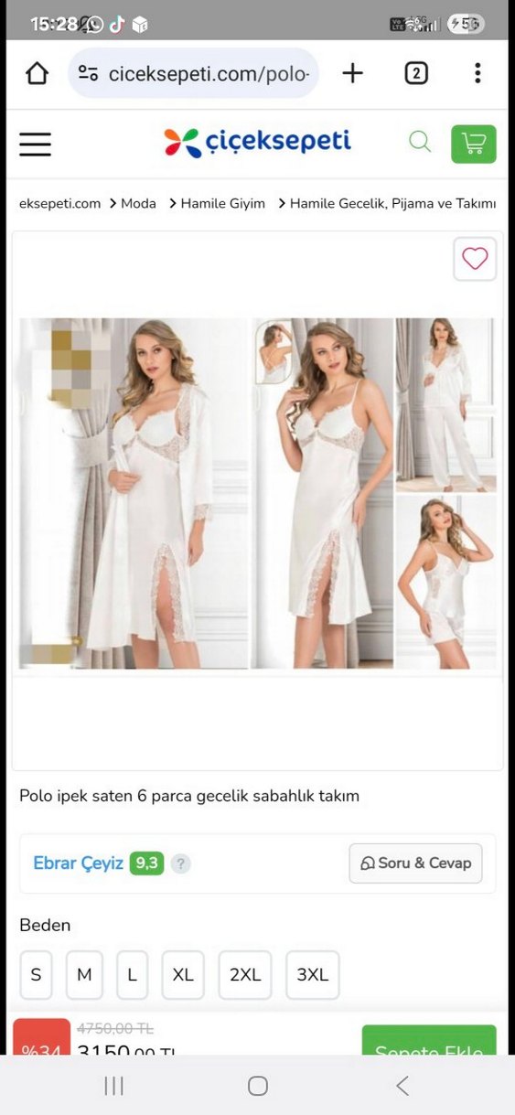 Uzun, beyaz ve ince askılı kollara sahip, modern klasik tarzda, rahat ve şık 6 parçalık polo ipek saten gece ve sabahlık takımıdır.Netten bakabilirsiniz orijinal fiyati 4000 tl dir.Sıfır ayarındadır.