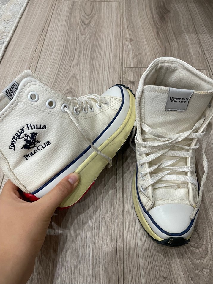 Polo ayakkabı. Defoludur sorunlarını fotoğrafladım ve fiyatını uyguna koydum bu yüzden iade kabul etmiyorum. Taban kısmı sararmış ve tabanın kenar kısımlarında sorunlar var yapıştırtıp kullanabilecek olan varsa alabilir. Onun dışında sorunu yok ayakkabının.