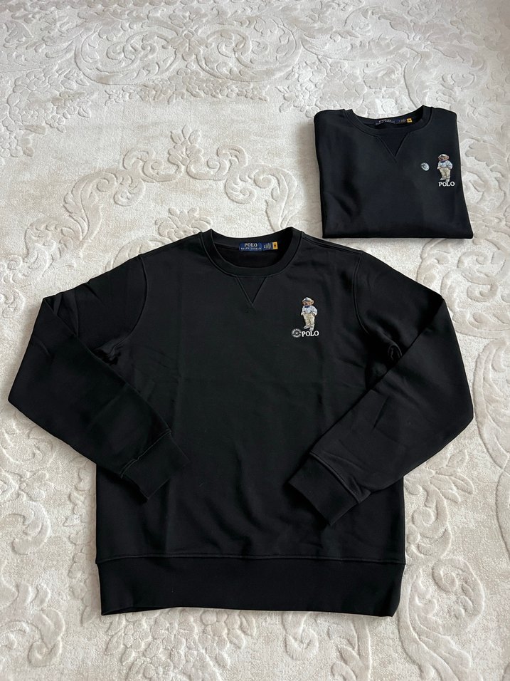 Siyah renkte, yuvarlak yakalı ve uzun kollu erkek sweatshirt. Yumuşak, örme kumaştan üretilmiş ve göğüste Polo nakışı bulunur. Günlük kullanıma uygun, trend casual tarzda.