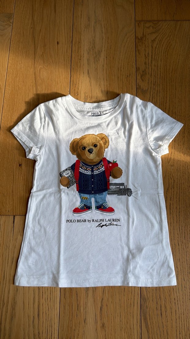 Polo R.L Kız Çocuk Beyaz Polo Bear Baskılı Tişört