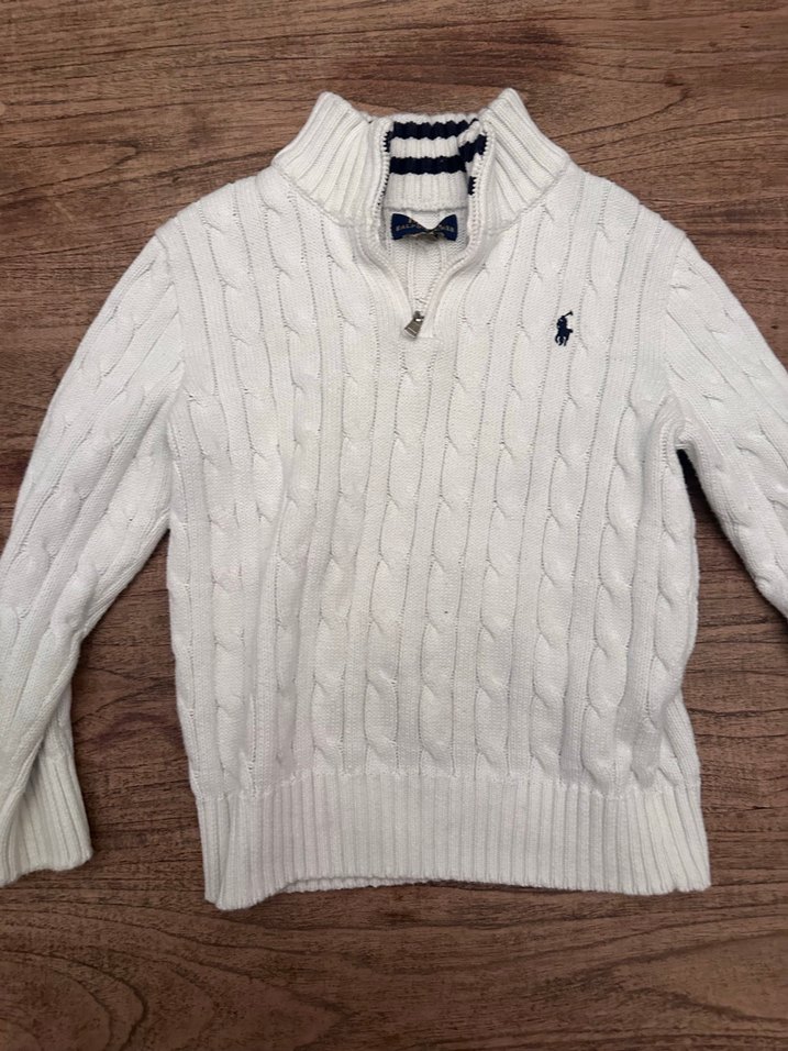 Polo ralph lauren Erkek Çocuk Beyaz Örgü Yarım Fermuarlı Kazak