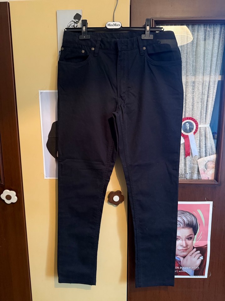 Erkekler için siyah denim pantolon, normal kesim ve midi boyda. Tokalı detayları ve sokak stiliyle günlük kullanıma uygundur. Polo Ralph Lauren erkek pantolon az kullanıldı orijinal 33/34 beden