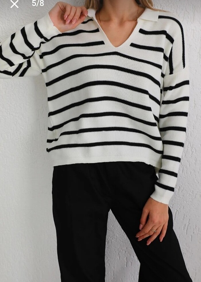 Polo yaka çizgili triko kazak