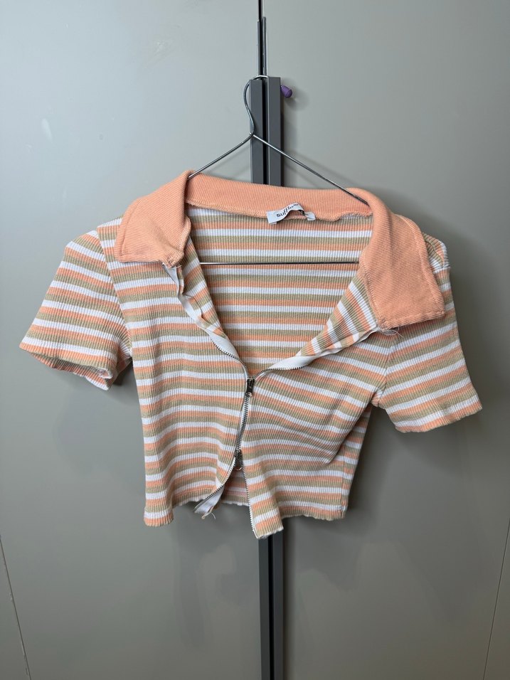 Polo yaka çizgili crop